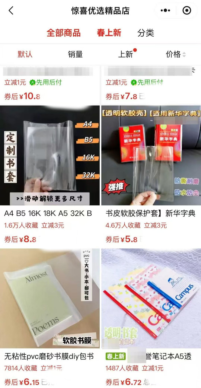 此前探询中,记者贯注到多个线上平台存在“身份浑沌”的“三无”书皮,这些家具多以“字典保护套”“札记本保护套”“竹帛保护套”“通用书皮”等款式销售,虽未表明“学生适用”,但实质多用于教材、功课本等学生用品,大量商家还宣称家具为环保材质。