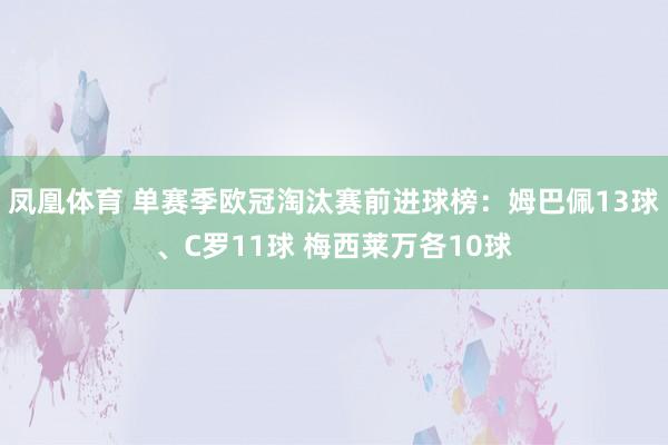 凤凰体育 单赛季欧冠淘汰赛前进球榜:姆巴佩13球、C罗11球 梅西莱万各10球亚博体彩官方网站入口 1月29日讯 皇马在本轮欧冠对阵2-4不敌本菲卡,姆巴佩双响难救主。数据统计透露,姆巴佩亦然欧冠历史单赛季在淘汰赛之前进球最多的球员。 单赛季欧冠淘汰赛前进球榜: 13球,姆巴佩(25-26赛季,皇马) 11球,C罗(15-16赛季,皇马) 10球凤凰体育,梅西(16-17赛季,巴萨)、莱万(19-20赛季