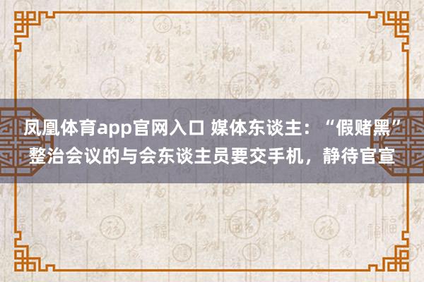 凤凰体育app官网入口 媒体东谈主:“假赌黑”整治会议的与会东谈主员要交手机,静待官宣2026世界杯官方网站 01月29日讯 当天上昼10:00,足球行业“假赌黑”专项整治行径的相干会议将在北京召开。 媒体东谈主宋承良暗示:半小时倒计时,但与会东谈主员要交手机凤凰体育app官网入口,是以静待官宣。