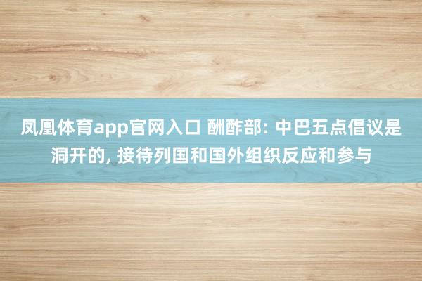 凤凰体育app官网入口 酬酢部: 中巴五点倡议是洞开的, 接待列国和国外组织反应和参与据澎湃新闻音问,4月1日,酬酢部发言东说念主毛宁主捏例行记者会。有记者发问,中共中央政事局委员、酬酢部长王毅昨天同来华的巴基斯坦副总理兼外长达尔会谈。中巴两边在会后发表了对于收复海湾和中东地区和平结识的五点倡议,发言东说念主能否先容中巴两边发表这份倡议的探究?中方期待这份倡议获取若何的效能? 毛宁先容,昨天中共中央政事局委员、酬
