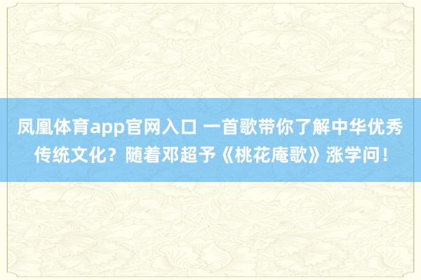 凤凰体育app官网入口 一首歌带你了解中华优秀传统文化?随着邓超予《桃花庵歌》涨学问!你是否想过,五百年前明代才子的失落大喊,能与土家民族歌谣与非遗文化碰撞出若何的火花?民族声乐歌唱家邓超予全新力作《桃花庵歌》上线,她联袂课本级曲作者李砚,以音乐为笔,以文化为墨,将唐伯虎的千古绝唱与土家眷非遗元素精妙统一,带咱们穿越时空,晓悟中华优秀传统文化的深厚底蕴。凝听之际,你会发现传统从未远去,而是在旋律中水灵,你会看见邓