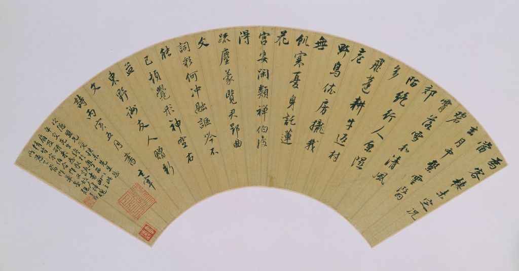 《孟郊诗》扇页,董其昌书。开首/故宫博物院
