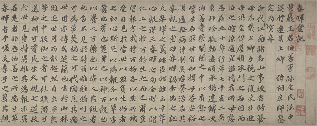 《春晖堂记》卷,元,欧阳玄书,《春晖堂记》是欧阳玄为王伯善的“奉亲不登大雅”所撰并书的记文。文中赞赏了王伯善对母亲的孝顺,同期又吟唱了王母的奢睿。从文中可知,此奉亲不登大雅名“春晖”,是其时的文东谈主吴养浩据唐孟郊“谁言寸草心,报得三春晖”的诗意而起。开首/故宫博物院