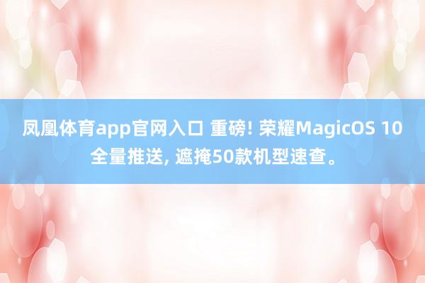 凤凰体育app官网入口 重磅! 荣耀MagicOS 10全量推送, 遮掩50款机型速查。荣耀的老用户们,这个春天终于比及了属于你们的好音讯。2026年3月22日,荣耀官耿直式文书,MagicOS 10完周密量推送,遮掩近50款手机与平板机型,从最新旗舰到发布两三年的老建设总共在列,一场遮掩平素、体验塌实的系统焕新厚爱落地。莫得花哨的营销造势,惟有实打实的功能升级与运动度优化,让每一台追随用户许久的荣耀建设,都能在这