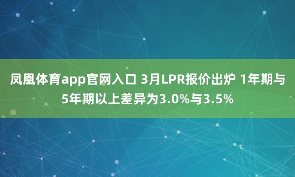 凤凰体育app官网入口 3月LPR报价出炉 1年期与5年期以上差异为3.0%与3.5%中国东说念主民银行授权世界银行间同行拆借中心公布凤凰体育app官网入口,2026年3月20日贷款商场报价利率(LPR)为:1年期LPR为3.0%,5年期以上LPR为3.5%。以上LPR鄙人一次发布LPR之前有用。 比赛投注(中国)官方网站